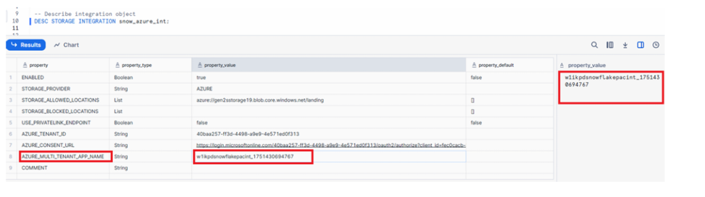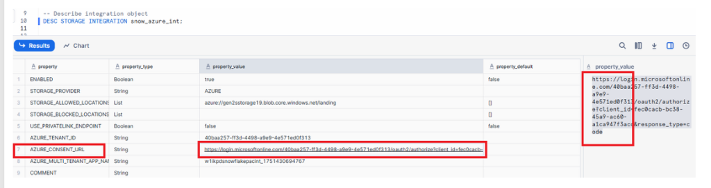 Now go to snowflake & run below command in snowflake & copy property value:DESC STORAGE INTEGRATION snow_azure_int;