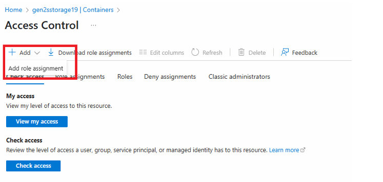 Go to storage account ⟶ container –-> Click on Access control IAM (on left panel)