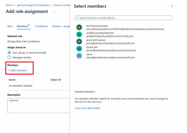 - In the Members selection panel of IAM**, search using part of the service principal ID.