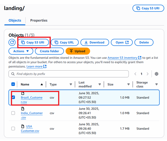 - Click Copy S3 URL