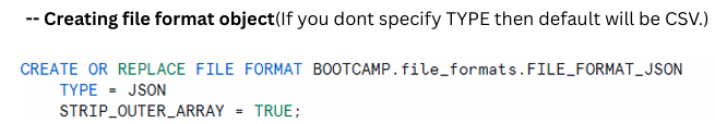 CREATE OR REPLACE FILE FORMAT BOOTCAMP.file_formats.FILE_FORMAT_JSON