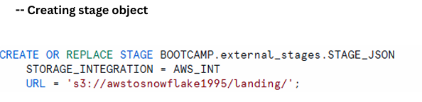 CREATE OR REPLACE STAGE BOOTCAMP.external_stages.STAGE_JSON