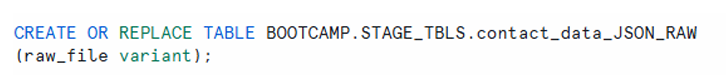 CREATE OR REPLACE TABLE BOOTCAMP.STAGE_TBLS.contact_data_JSON_RAW