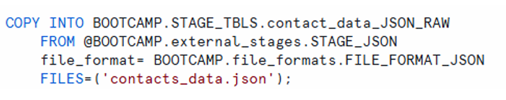 COPY INTO BOOTCAMP.STAGE_TBLS.contact_data_JSON_RAW