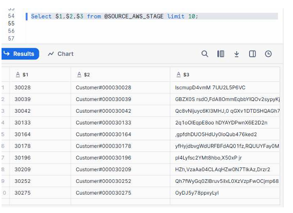 With the storage integration configured earlier, the next step is to test the connectivity by creating an external stage that points directly to your S3 bucket.