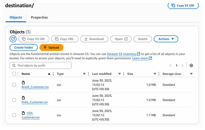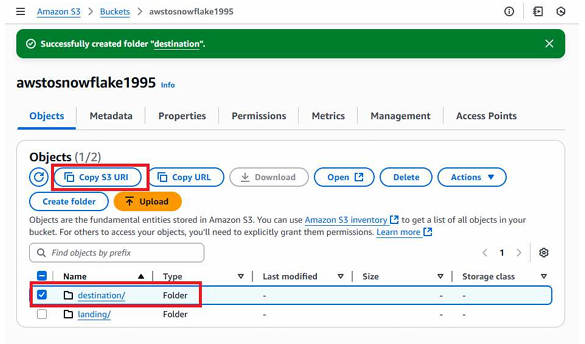Now create a folder named destination and copy S3 url