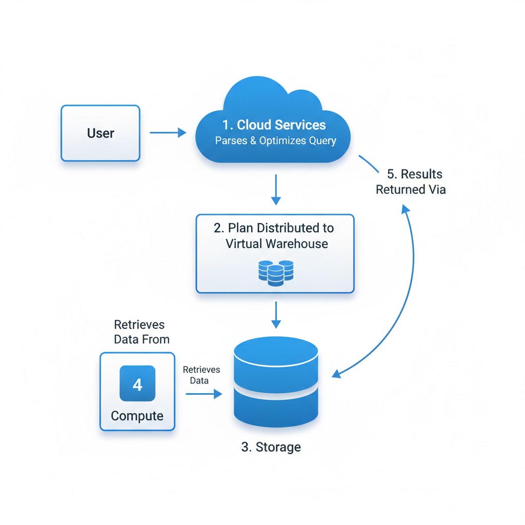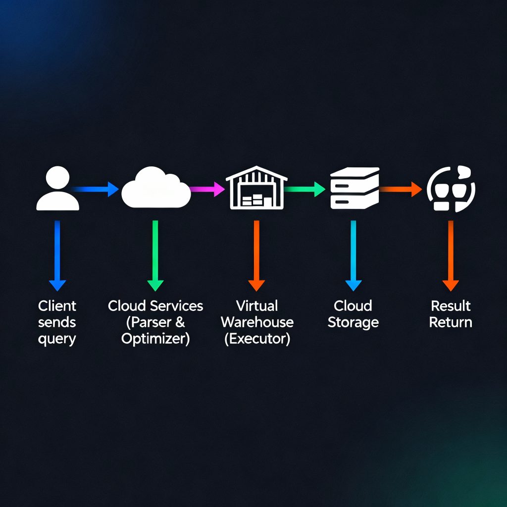 When you run a query, Snowflake doesn’t simply read and execute SQL. Instead, it: