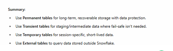 Understanding table types isn’t just an exam topic—it’s a real-world Snowflake skill that affects: