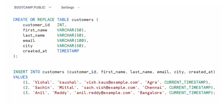 CREATE OR REPLACE TABLE customers (