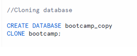 - Cloning a database copies all schemas and tables