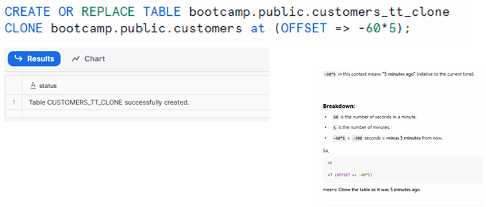 CLONE customers AT (OFFSET => -60*5);
